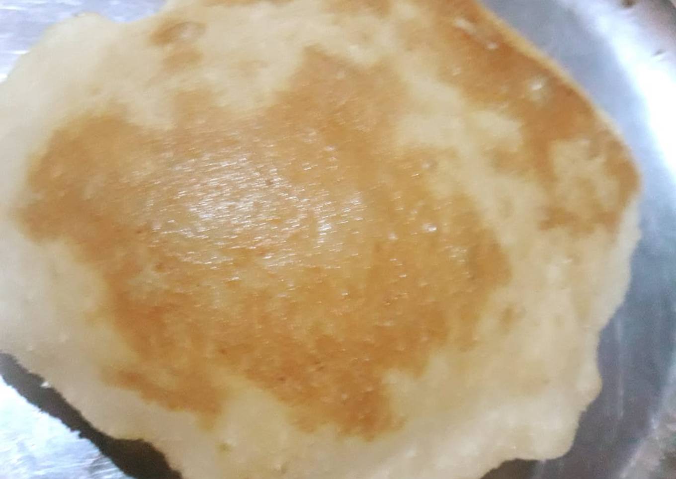 - Heat oil in a pan. When oil is hot, slide a bhatura slowly from the side to the oil. When it comes on top press it lightly with the slotted spoon and let it puff up. Now flip it over and fry it until pink on both sides. You can keep rolling and frying bhatura at the same time. Prepare all the bhatura in the same way. Serve hot bhatura with chhole.