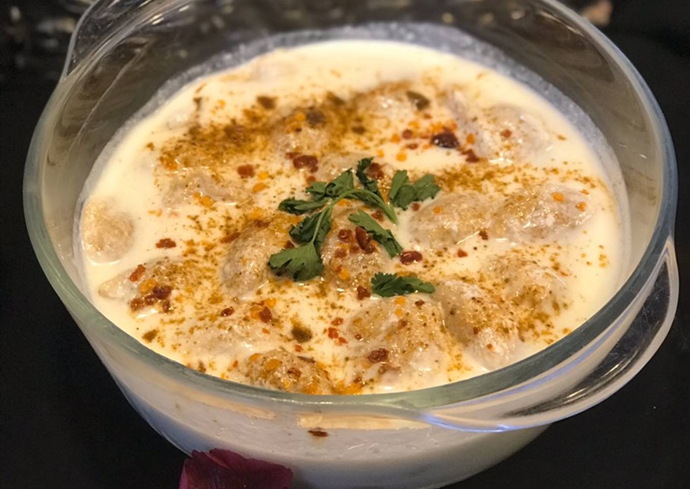 - In separate bowl add yogurt sugar salt and milk whisk it till all sugar dissolve then add all squeeze fritters and garnish it with chatmasala (spices) and serve